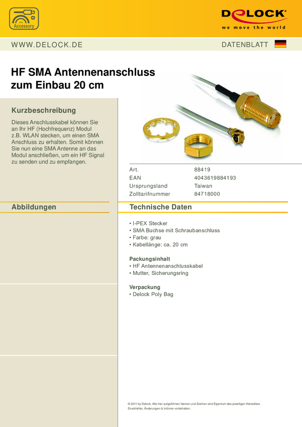Delock Złącze antenowe HF SMA do instalacji SMA / I-PEX 20 cm