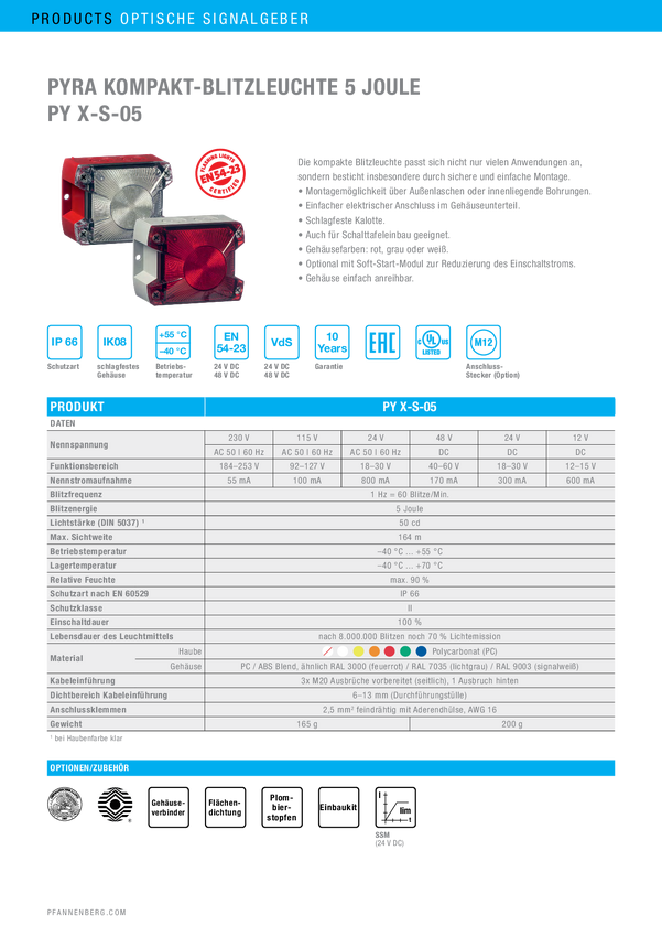 Lampa migająca Pfannenberg PY X-S-05 24 DC AM M12 7035 Xenon pomarańczowy Flesz 24 V/DC