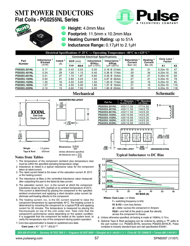 Ind Power Wirewound 600nH 20% 100KHz Ferrite 18A T/R