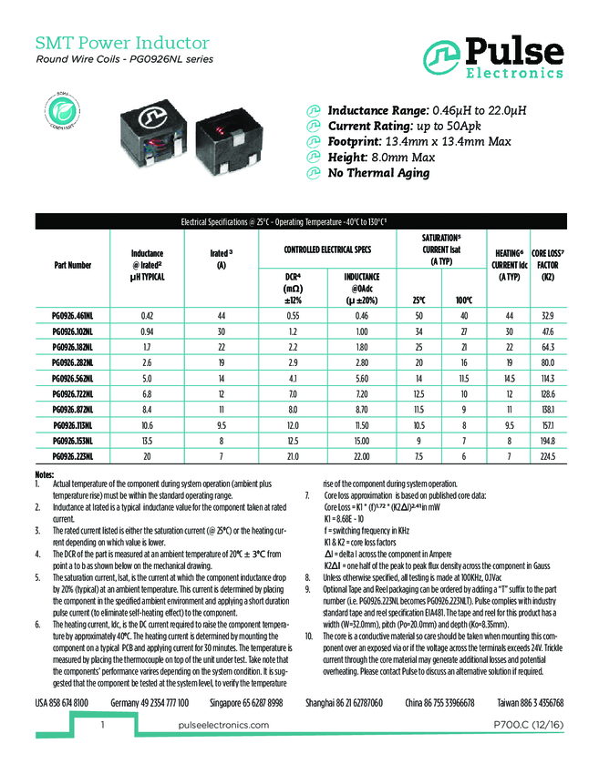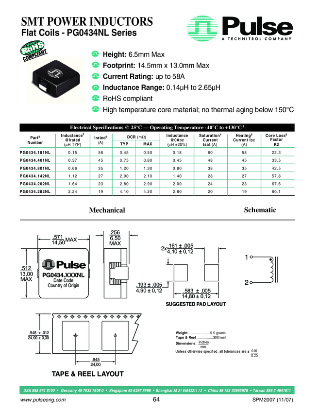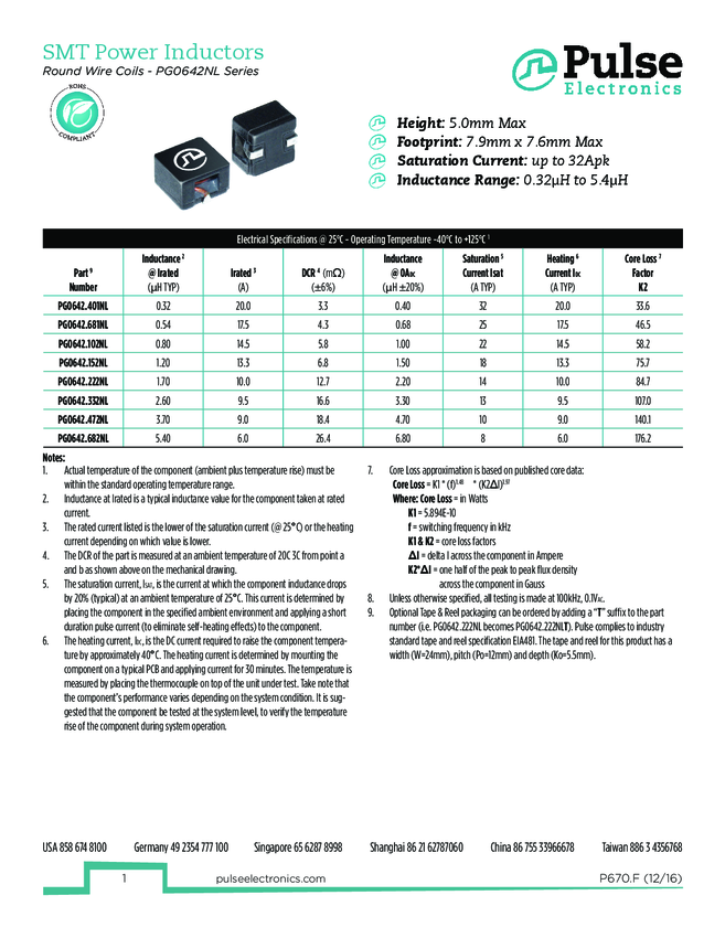 Ind Power Wirewound 470nH 20% 100KHz 20A T/R