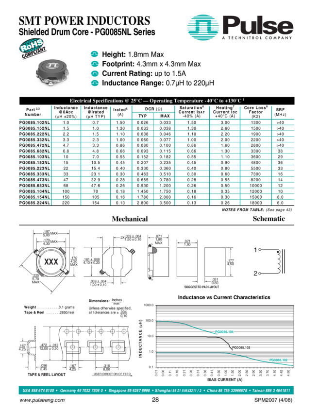 Ind Power Wirewound 400nH 15% 100KHz 29A T/R
