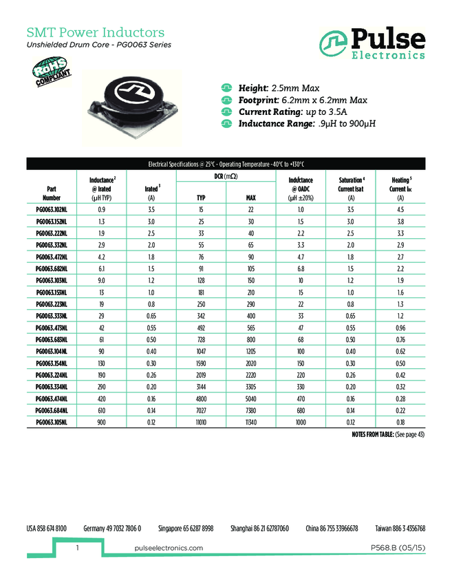 Ind Power Wirewound 1.5uH 20% 100KHz 13.3A T/R