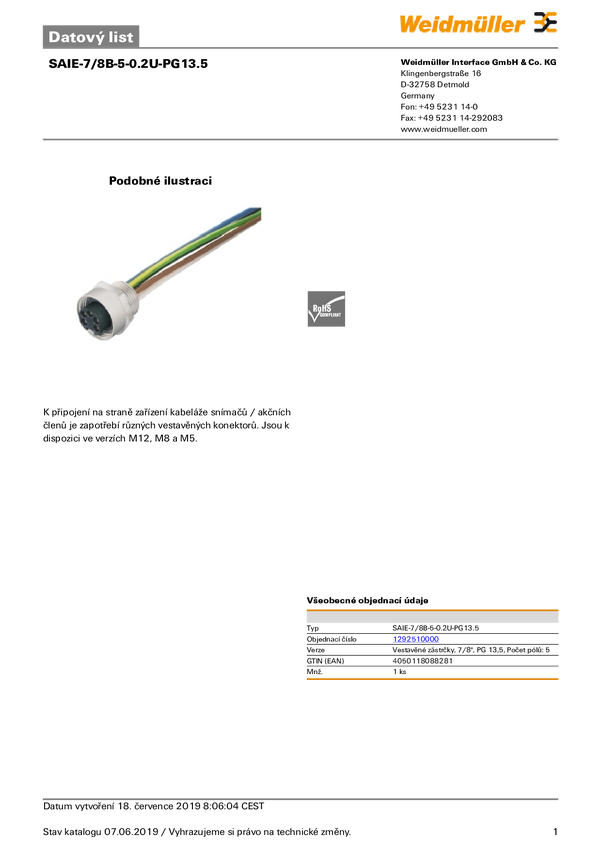Złącze do zabudowy Weidmüller SAIE-7/8"S-5-0.2U-PG13.5 1292480000 1 szt.
