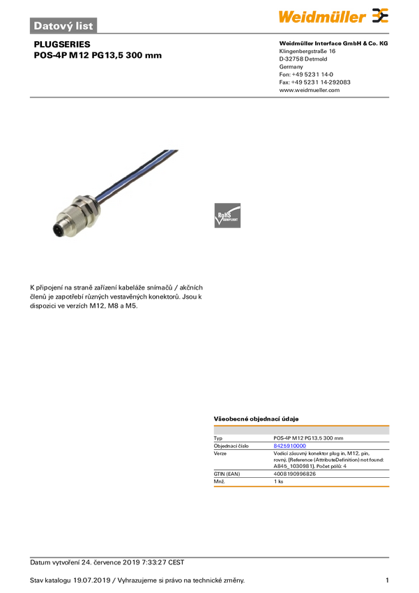 Złącze Weidmüller POS-4P M12 PG13,5 150MM 9455650000 1 szt.