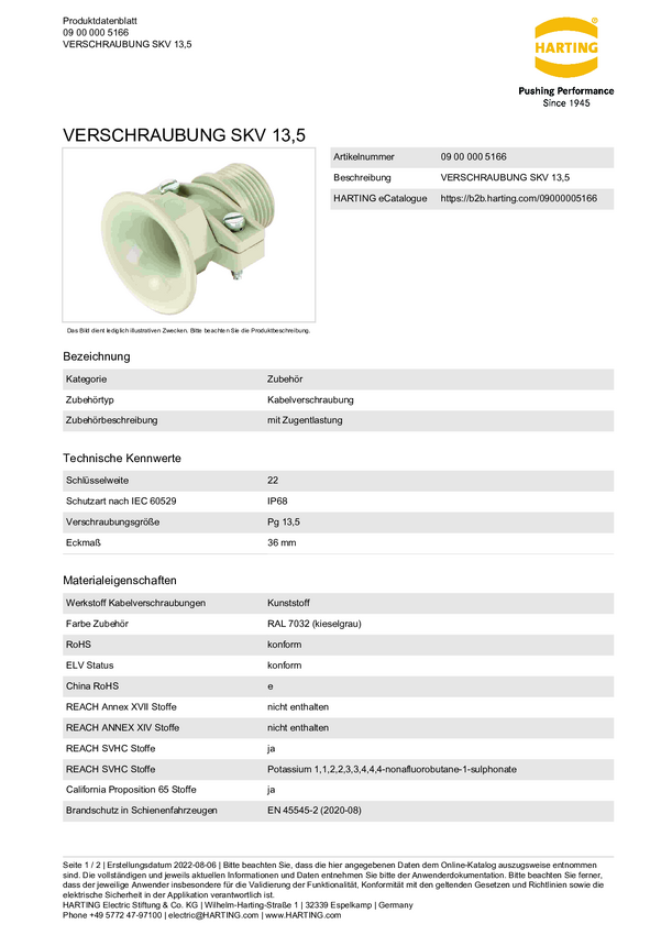 Harting 09000005166 Dławnica kablowa PG13.5 tworzywo sztuczne 1 szt.