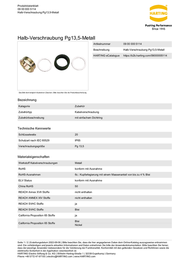Harting 09000005114 Dławnica kablowa PG13.5 metal 1 szt.
