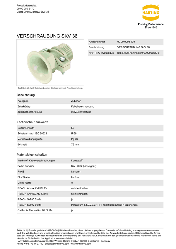 Harting 09000005170 Dławnica kablowa PG36 tworzywo sztuczne 1 szt.