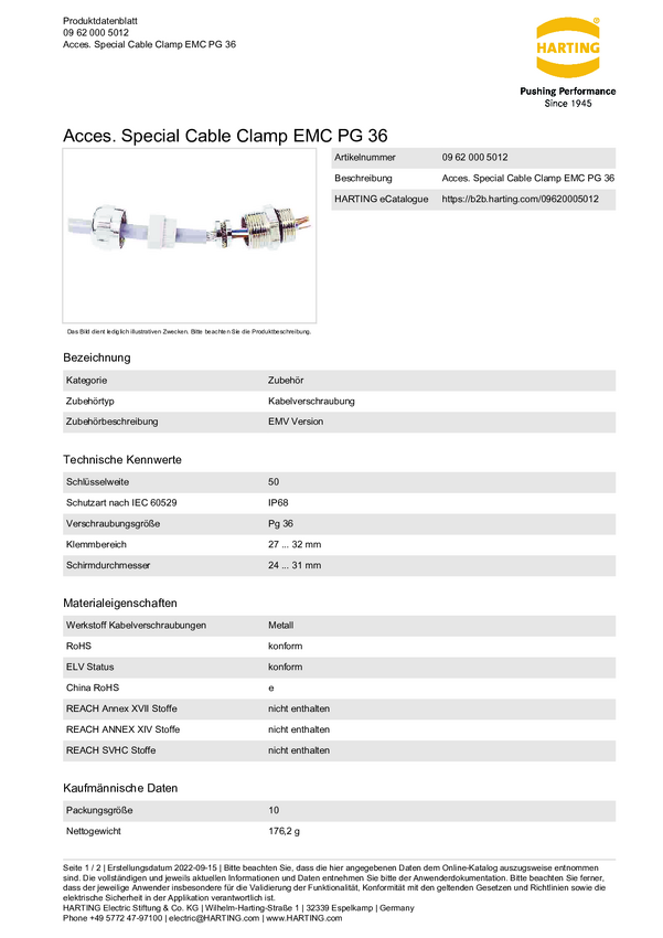 Harting 09000005099 Dławnica kablowa 09 00 000 5099, od 32 mm, do 36 mm, PG36, 1 szt.