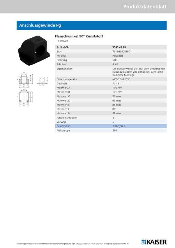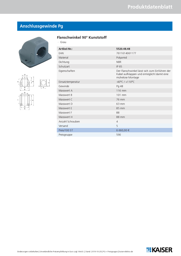 Kaiser Elektro 5520.48.48 Kołnierz kątowy 5520.48.48, PG48, 1 szt.