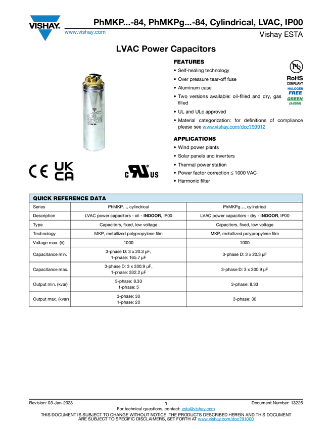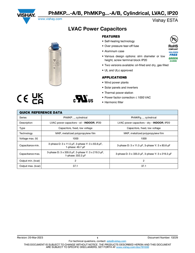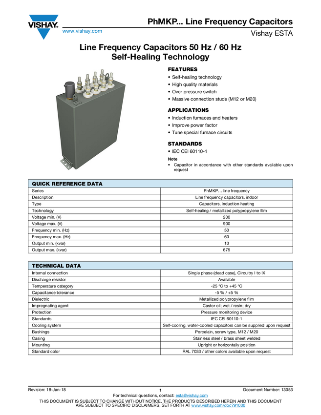 Line Frequency Capacitors 50 Hz / 60 Hz Self-Healing Technology