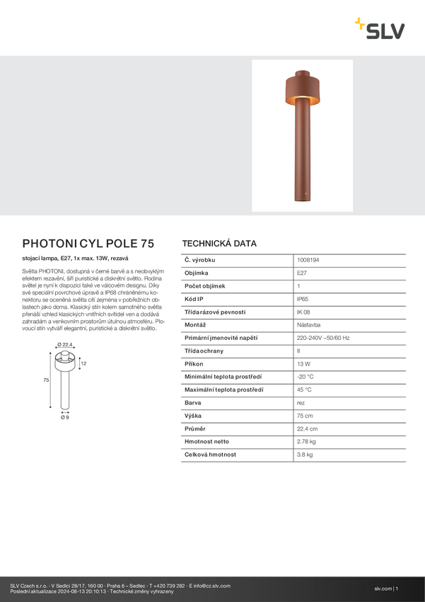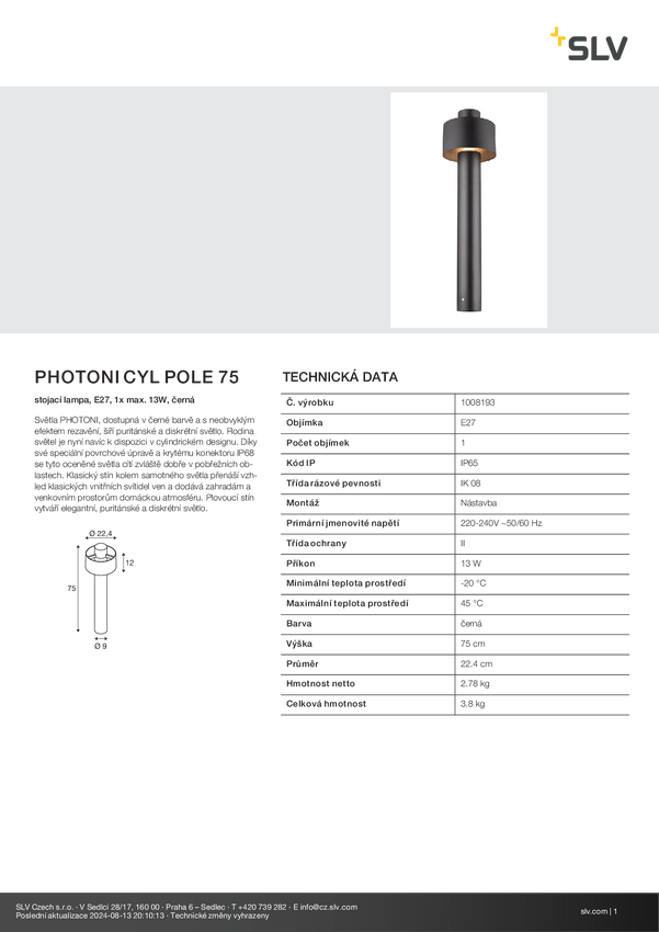Lampa stojąca SLV Photoni 1008193 13 W IP65