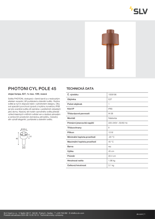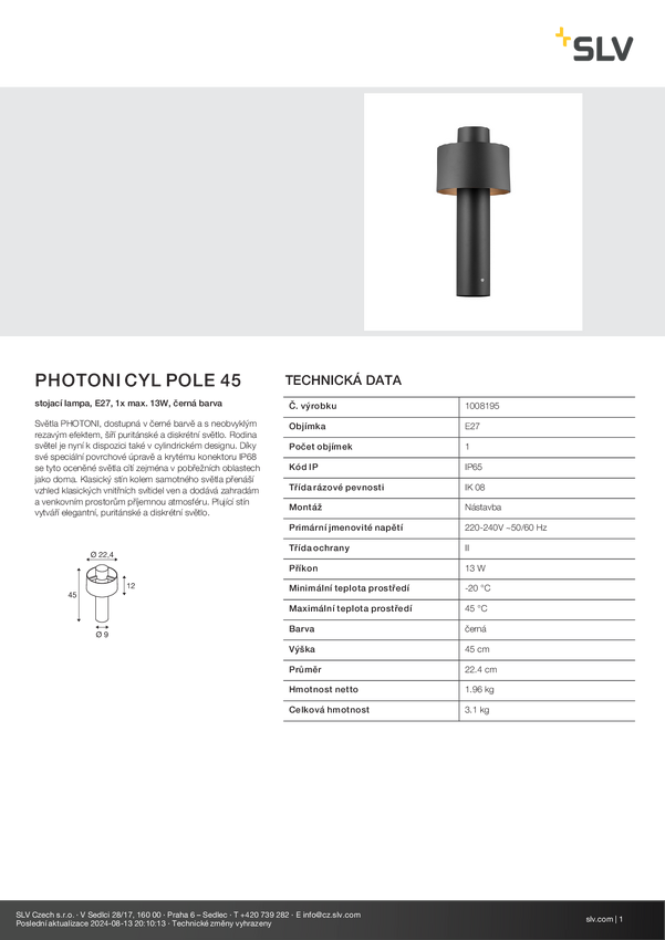Lampa stojąca SLV Photoni 1008195 13 W IP65