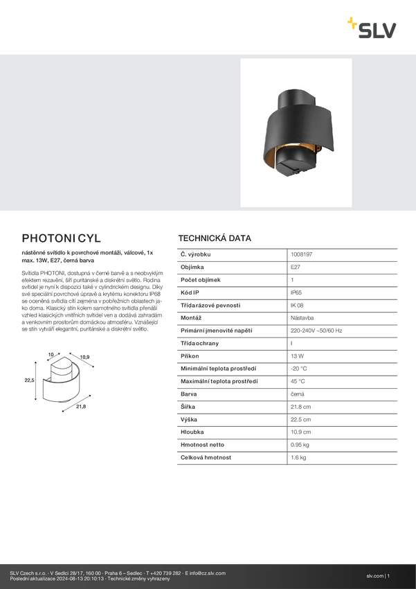 Zewnętrzna lampa ścienna SLV Photoni 1008197 13 W czarny