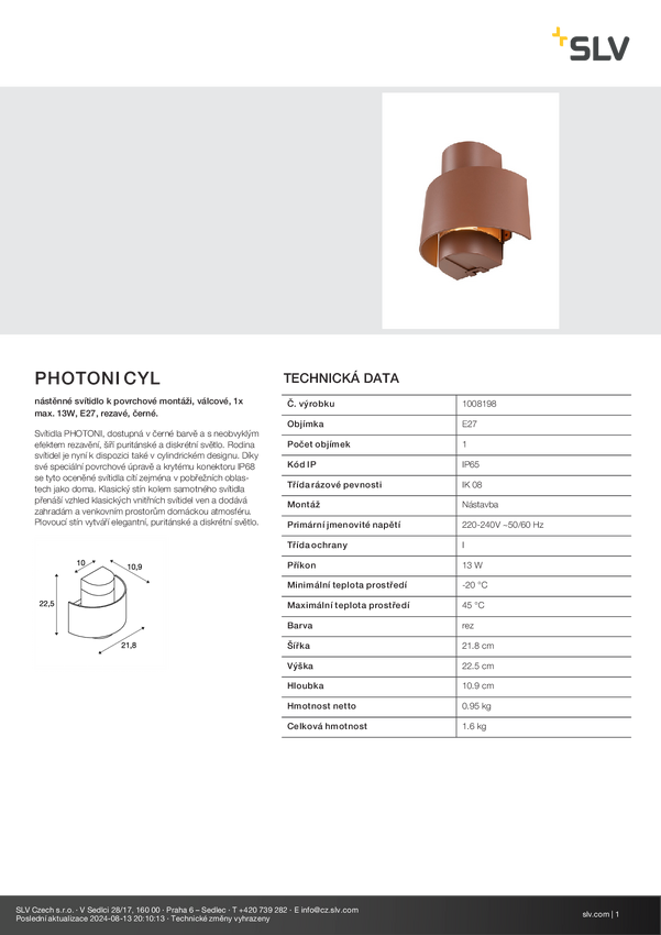 Zewnętrzna lampa ścienna SLV Photoni 1008198 13 W rdzawy