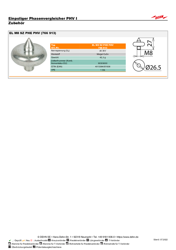 DEHN 766913 EL M8 SZ PHE PHV Elektroda cebulowa 1 szt.