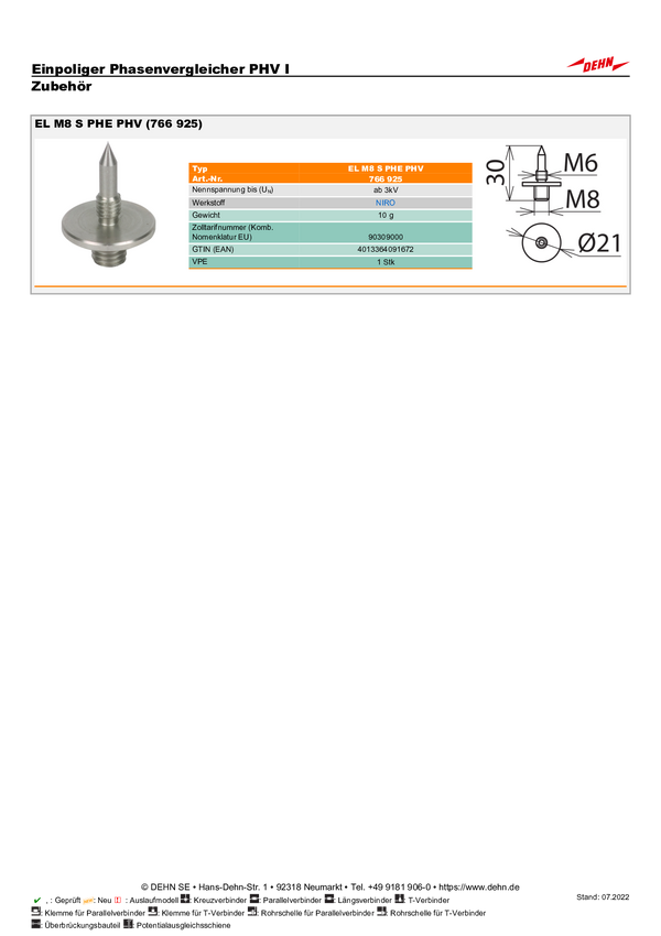 DEHN 766925 EL M8 S PHE PHV Elektroda igłowa 1 szt.