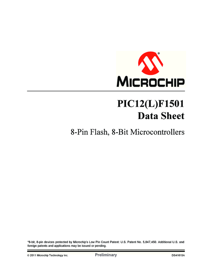 PIC12(L)F1501 8-Pin Flash, 8-Bit Microcontrollers Data Sheet (11/07/2011)