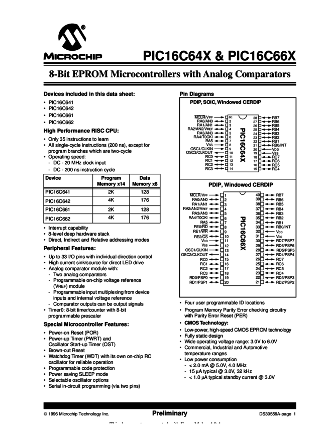 PIC16C642/62 Datasheet (04/01/2003)