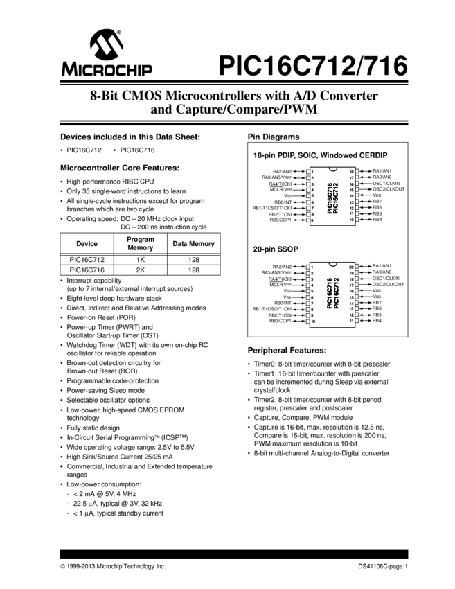 PIC16C712/716 Datasheet (02/05/2013)