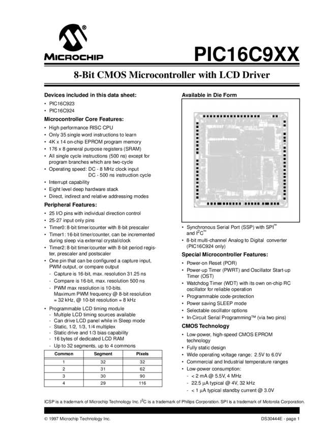 PIC16C923/4 Datasheet (04/01/2003)