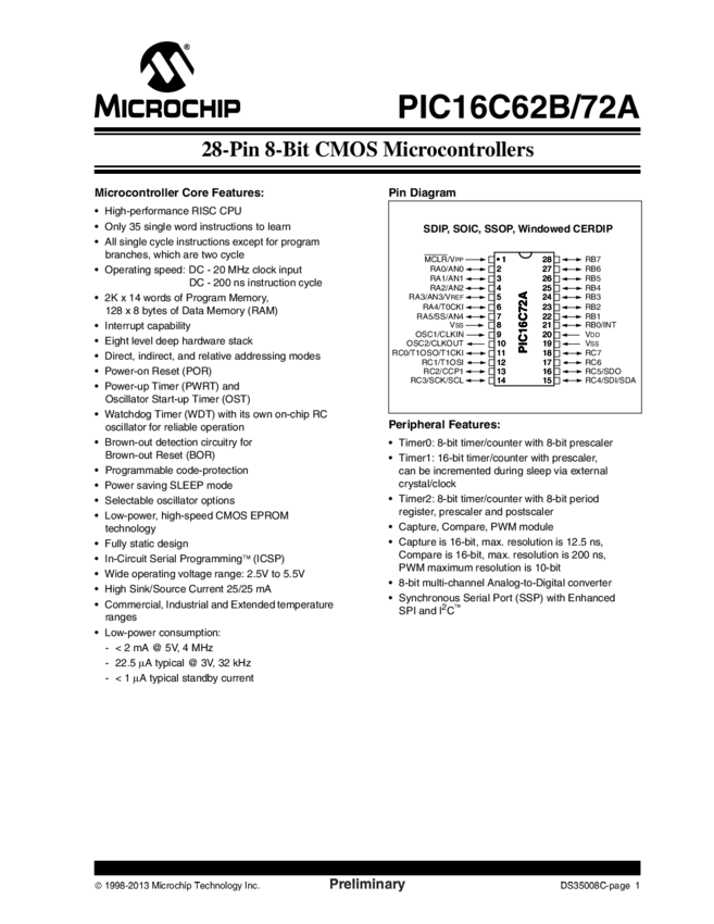 PIC16C62B/72A Datasheet (02/05/2013)