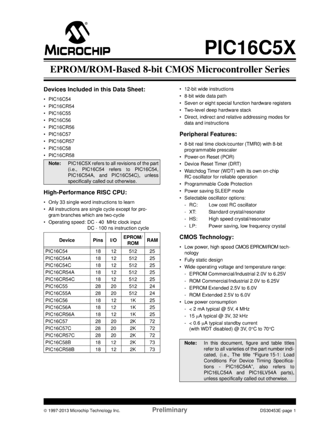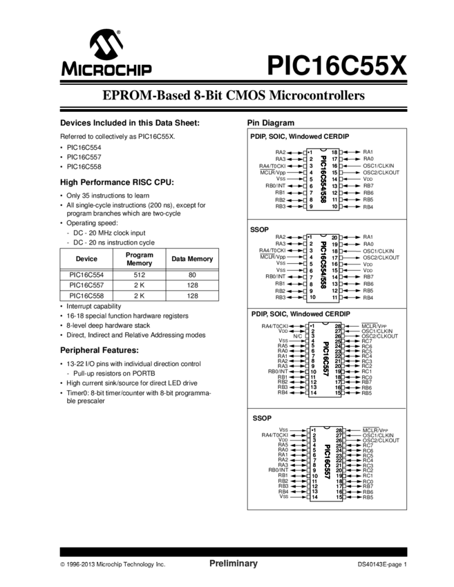 PIC16C554/8 Datasheet (02/05/2013)