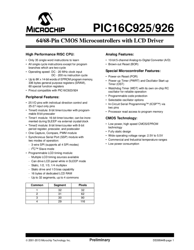 PIC16C925/6 Datasheet (02/05/2013)