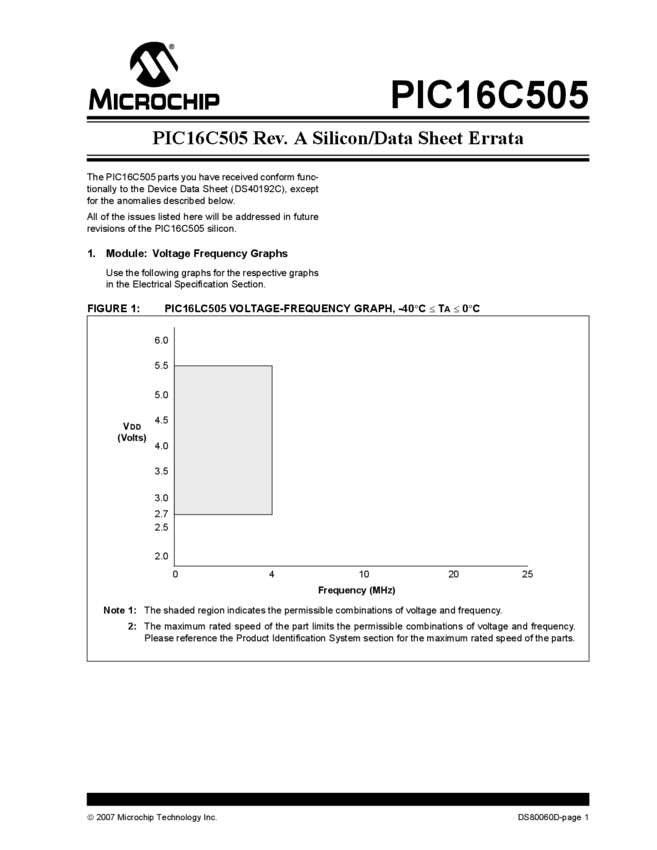 PIC16C505 Rev. A Silicon Data Sheet Errata