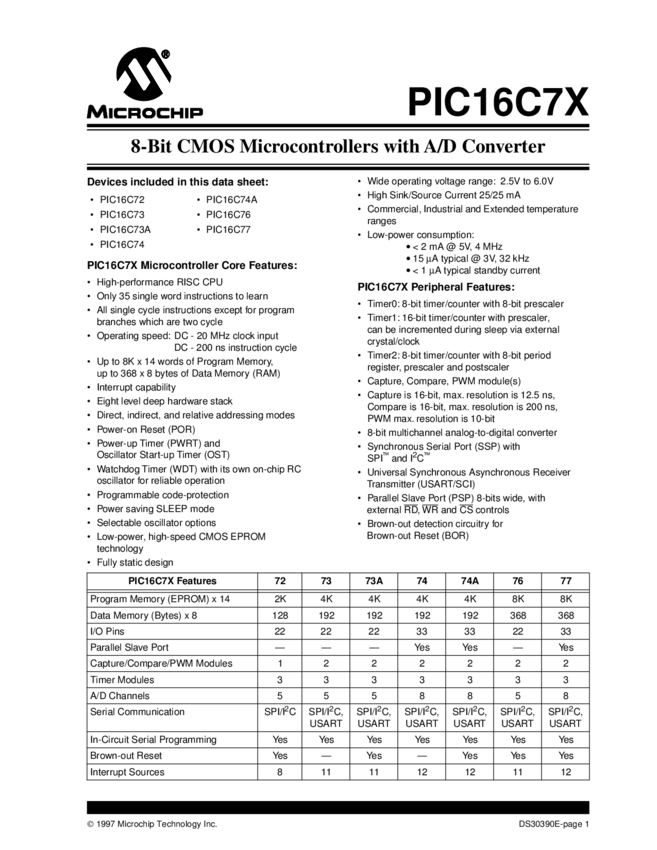PIC16C72/73/73A/74/74A/76/77 Datasheet (04/01/2003)