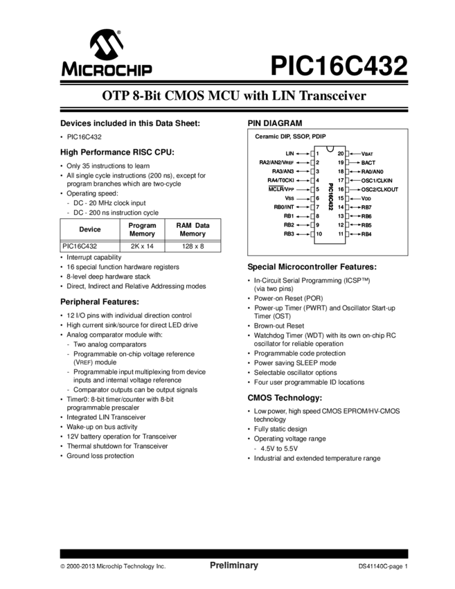PIC16C432 Datasheet (02/05/2013)