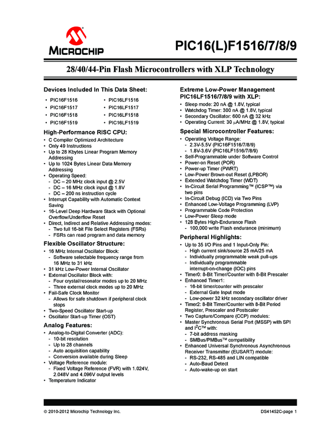 PIC16(L)F1516/1517/1518/1519 Data Sheet (09/17/2012)