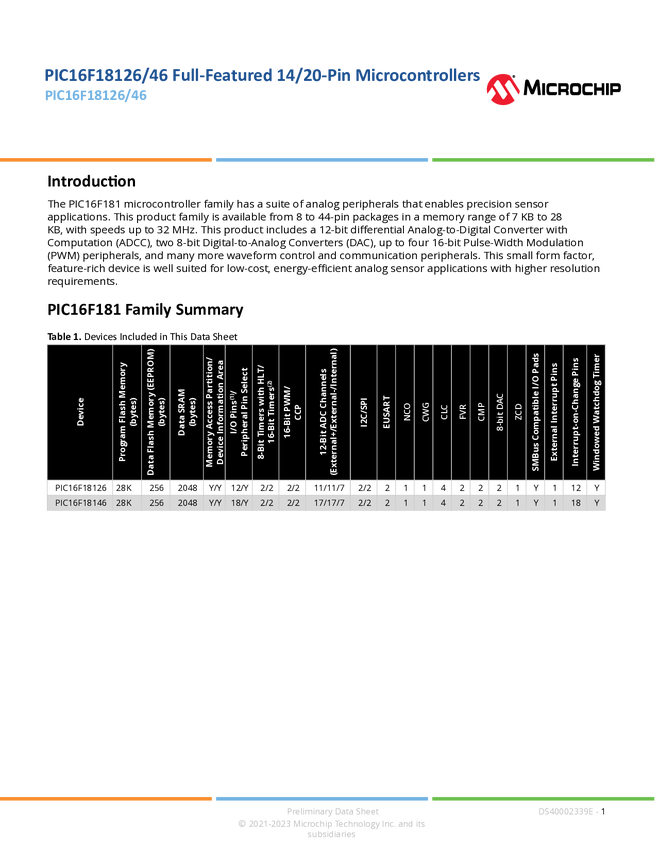 PIC16F18126/46 Full-Featured 14/20-Pin Microcontrollers Data Sheet
