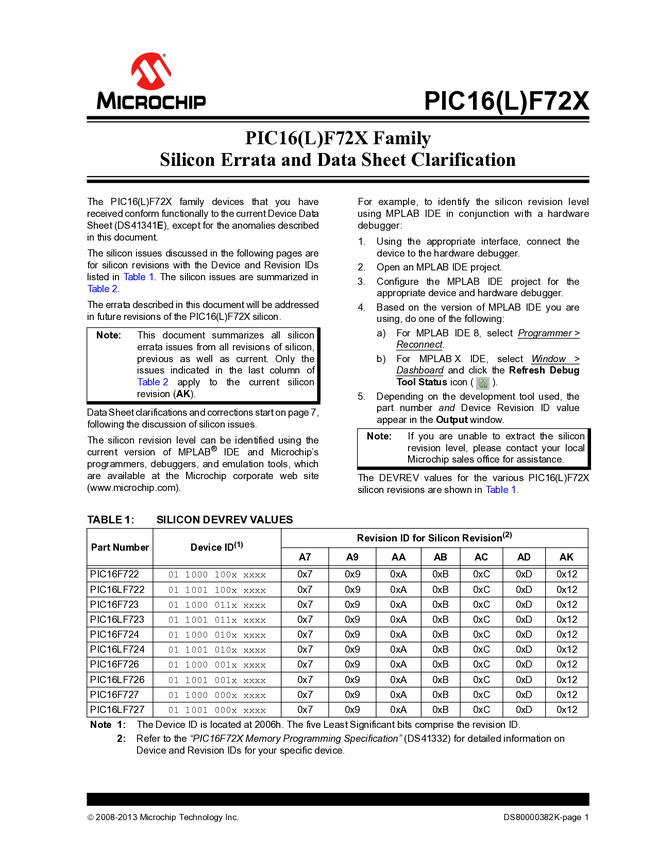 PIC16(L)F720/721 20-Pin Flash Microcontrollers (08/16/2013)