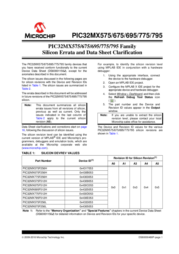 PIC32MX575/675/695/775/795 Family Errata and Datasheet Clarification