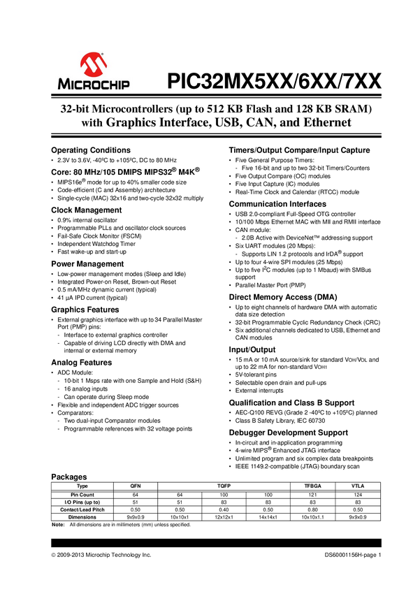 PIC32MX5XX/6XX/7XX Family Data Sheet