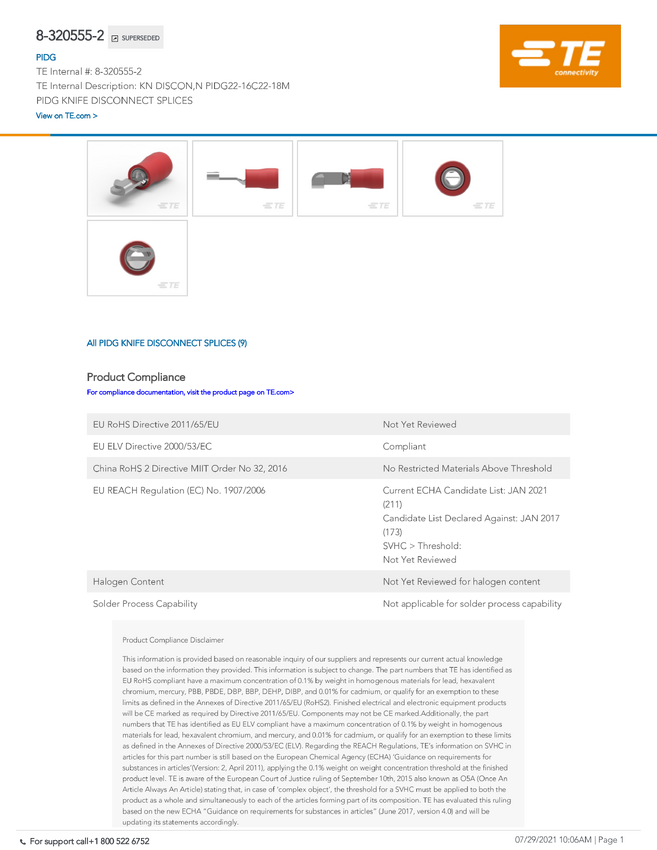 TE Connectivity 320566 TE AMP PIDG Terminals and Splices, 1 szt.