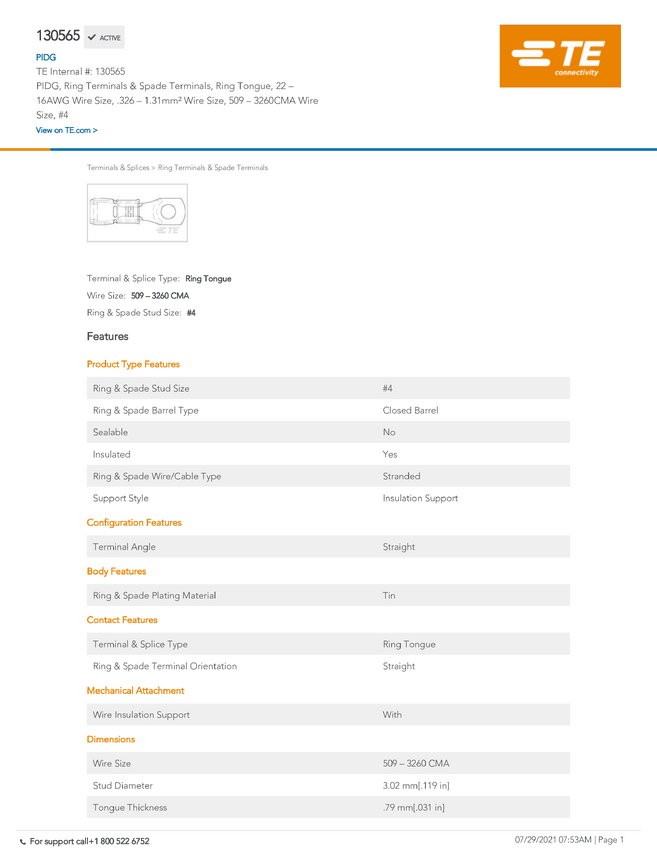 TE Connectivity 130565 TE AMP PIDG Terminals and Splices, 1 szt.