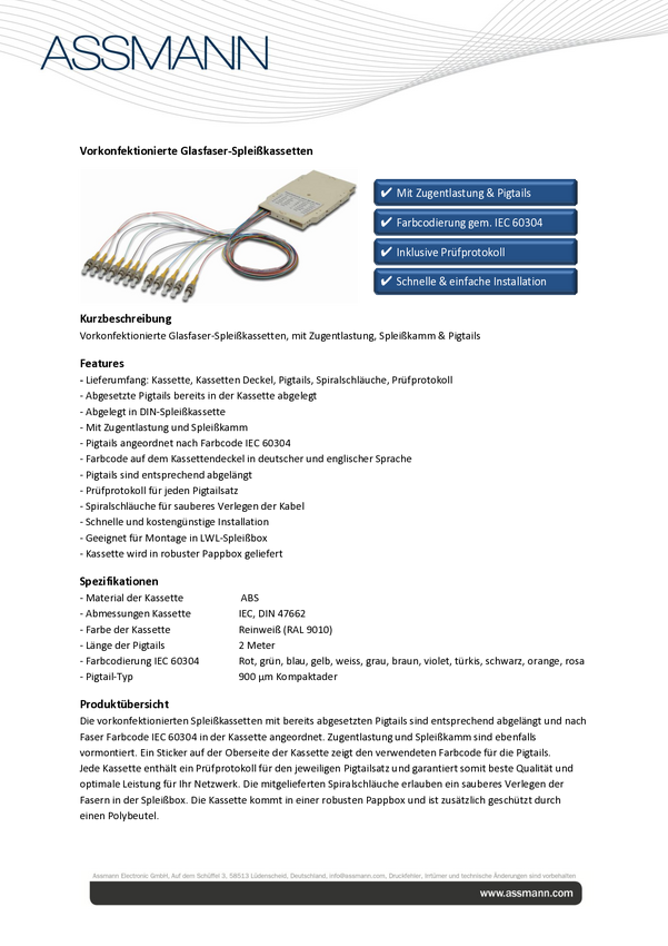 Kaseta spawów DIGITUS Professional z 12 Pigtails, zmontowana, LC (UPC), Singlemode, 9/125µ, OS2, barwione Pigtails LSZH