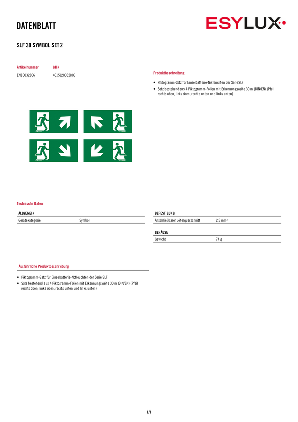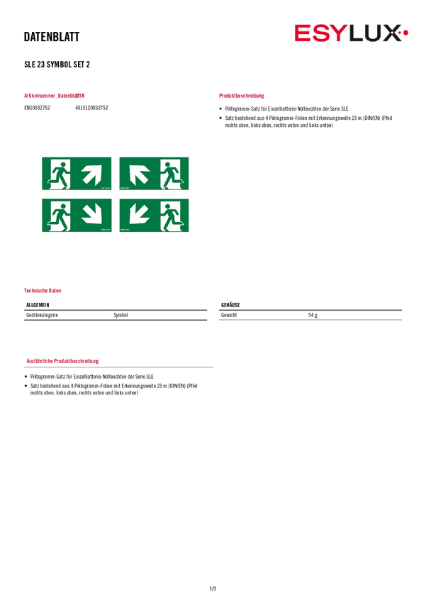 Zestaw piktogramów ESYLUX EN10032745 EN10032745, 1 szt.