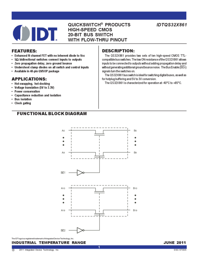 QuickSwitch Products High-Speed CMOS 20-Bit Bus switch with Flow-Through Pinout
