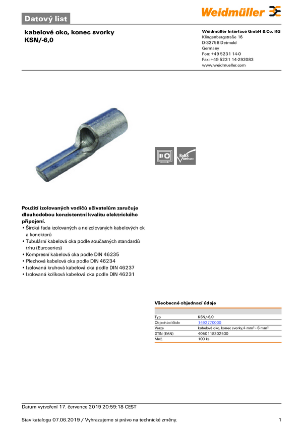 Weidmüller 1492770000 Złącze pinowe 100 szt.