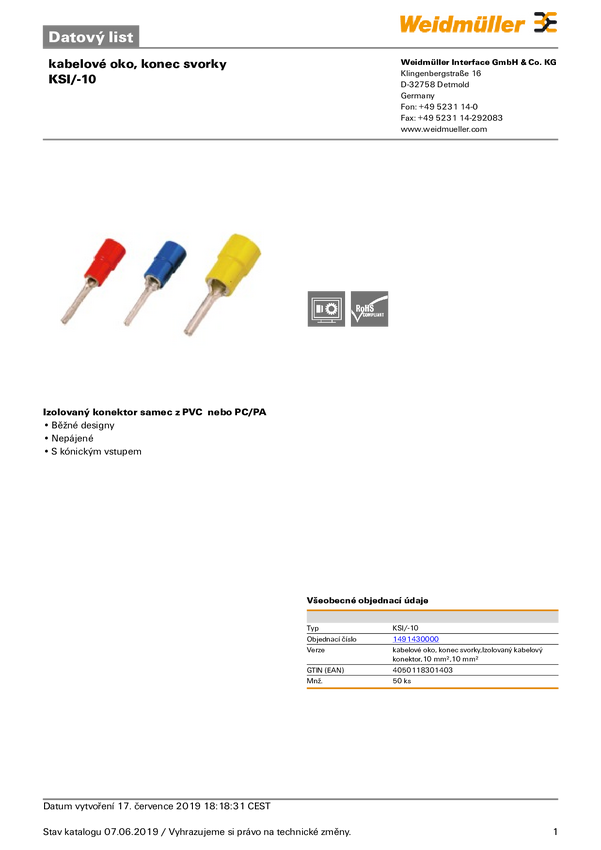 Weidmüller 1491430000 Złącze pinowe 50 szt.