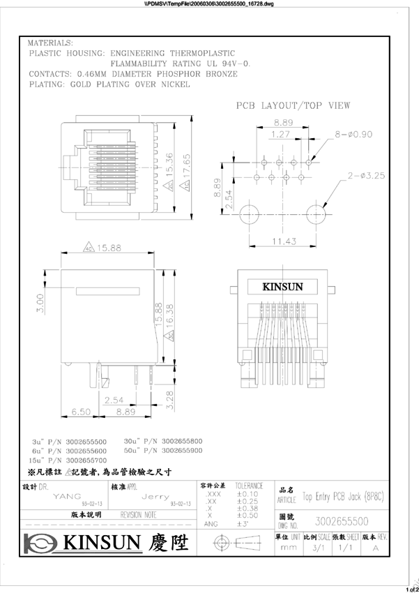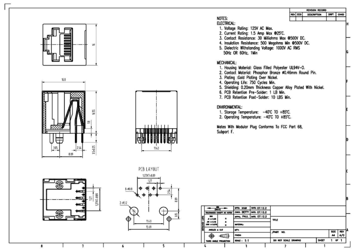 Gniazdo , 8-stykowe, pionowe, styki 6μ" Au