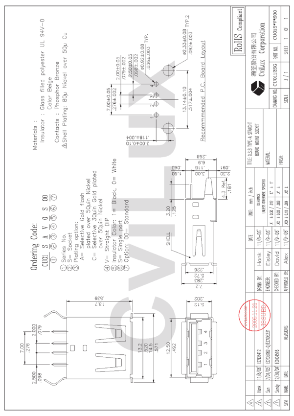 gniazdo, 1 x port typu A, , pionowe, biały izolator, CviLux