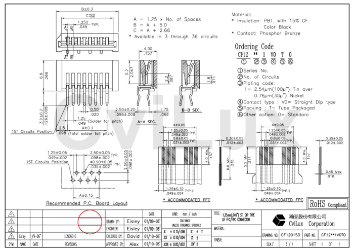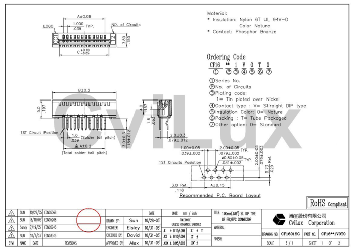 Złącze żeńskie ZIF, 10-stykowe , pionowe, CviLux