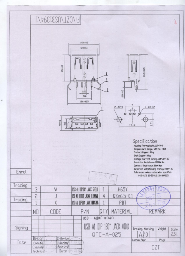 Gniazdo , pionowe, 4-stykowe, gabaryt 4, z uskokiem, z górnym wejściem, styki 6μ" Au