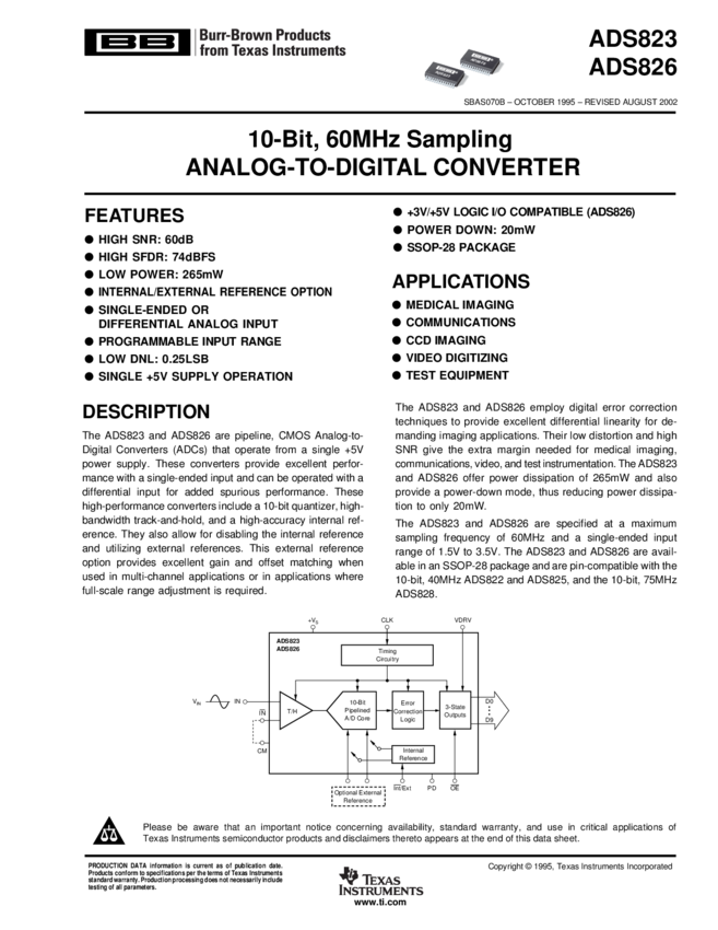 ADC Single Pipelined 60Msps 10-bit Parallel 28-Pin SSOP T/R