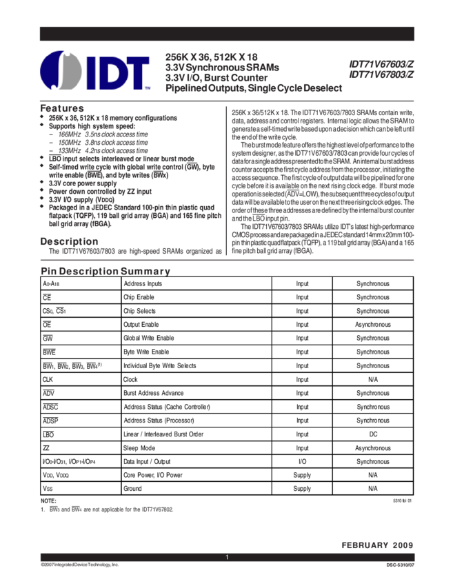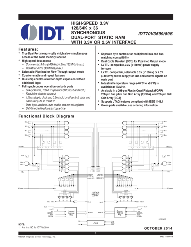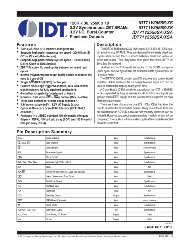 3.3V 128Kx36 ZBT Synchronous PipeLined SRAM with 3.3V I/O