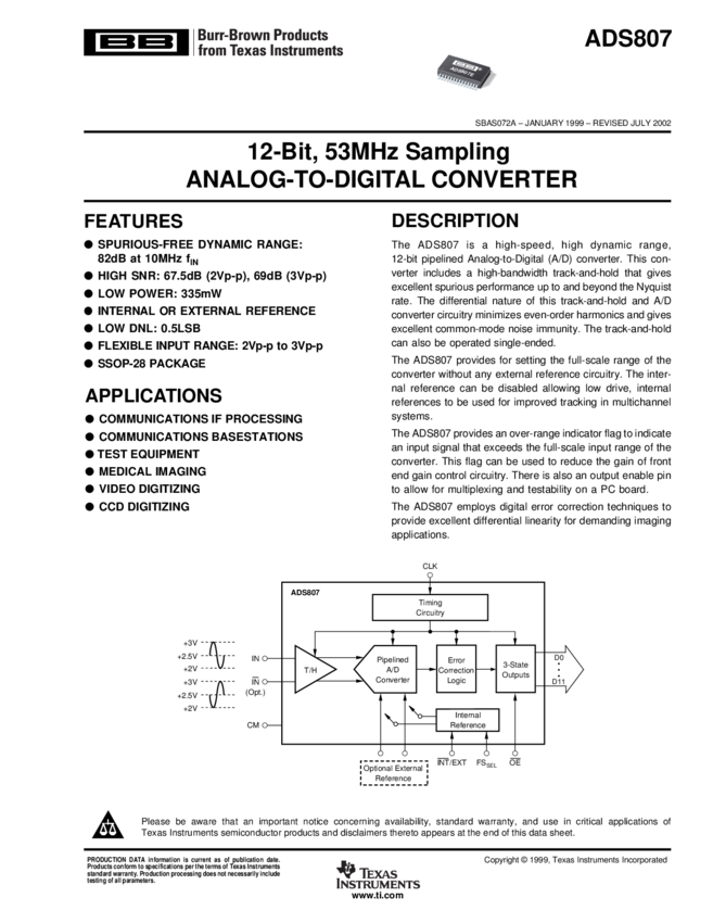 ADC Single Pipelined 53Msps 12-bit Parallel 28-Pin SSOP T/R