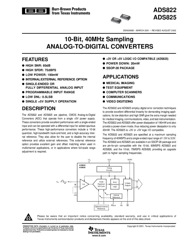 ADC Single Pipelined 40Msps 10-bit Parallel 28-Pin SSOP T/R